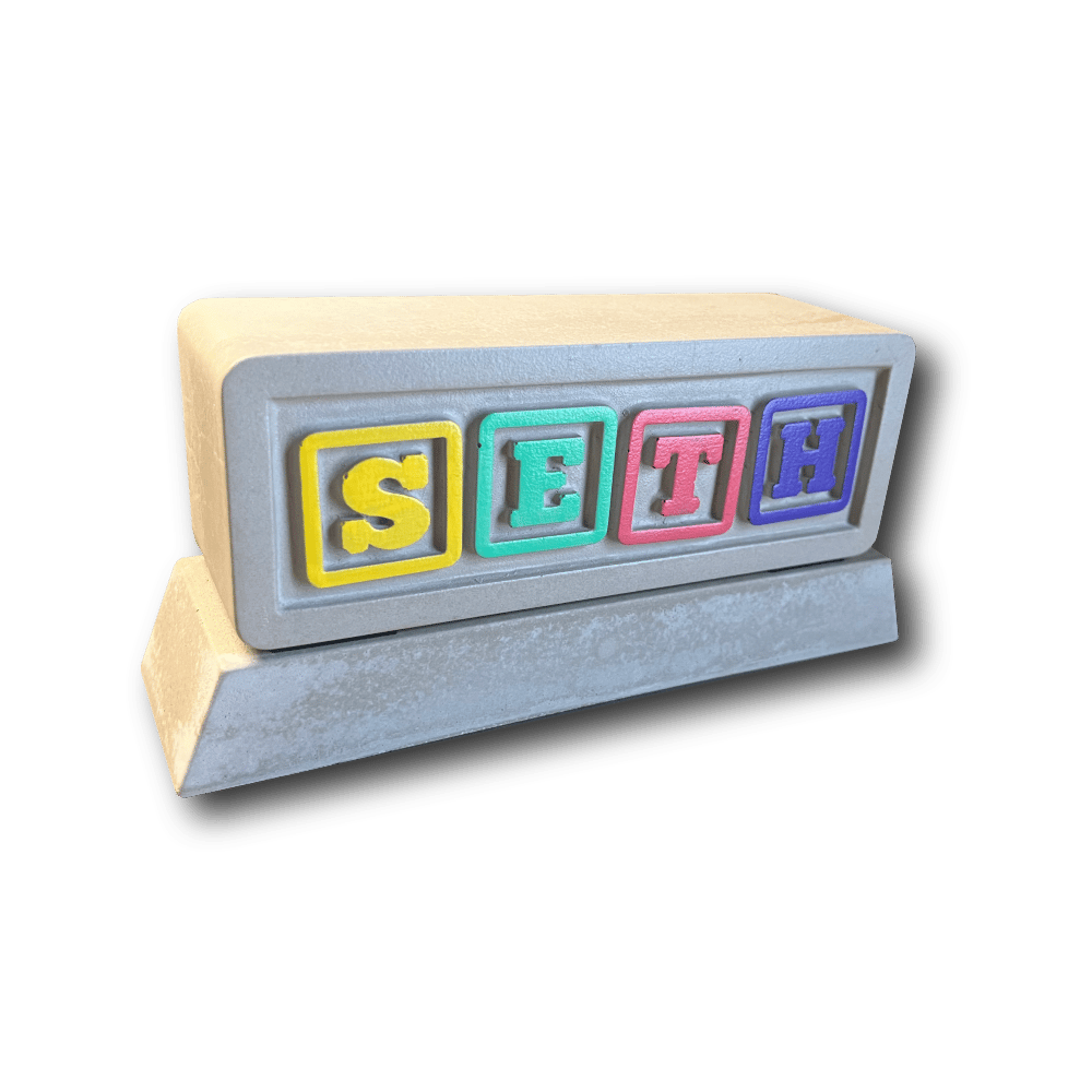 colorful block letters in a big block.